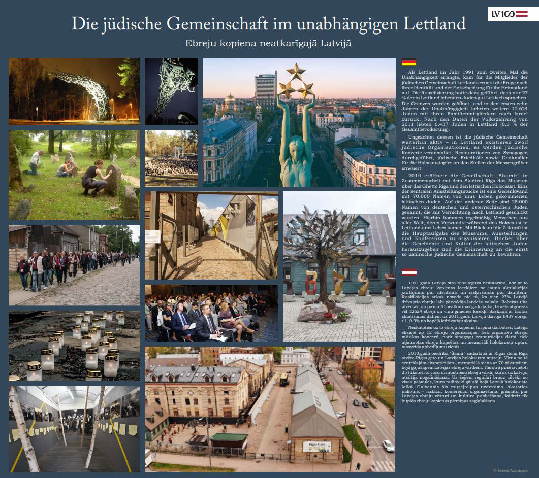 Im Hinblick auf die hundertjährige Unabhängigkeit Lettlands ist diese Wanderausstellung von der jüdischen Nichtregierungsorganisation „Shamir“ und dem Riga Ghetto- und lettischem Holocaust Museum konzipiert.