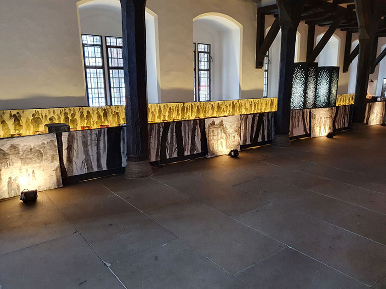 Wie schon in Riga, wurde das Projekt auch in der unteren Halle das Bremer Rathauses den räumlichen Gegebenheiten angepasst, durch zusätzliche Objekte ergänzt und auch inhaltlich erweitert.
